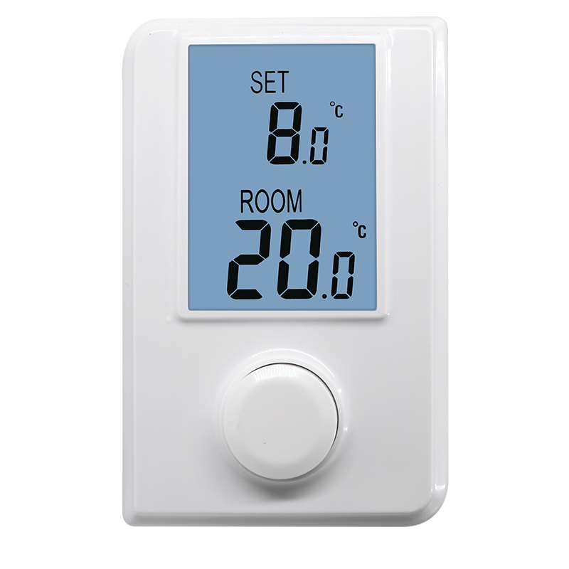 This surface-mounted thermostat has been developed to be able to switch electric and conventional heating systems on and off using a set temperature and time